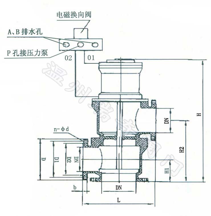 本閥主要由閥體、閥板、閥桿以及電磁換向閥組成。該閥具有操作簡(jiǎn)單、啟閉靈活、密封可靠、無(wú)噪音等特點(diǎn), 是實(shí)現(xiàn)自動(dòng)控制、集中控制和遠(yuǎn)程控制的理想設(shè)備。