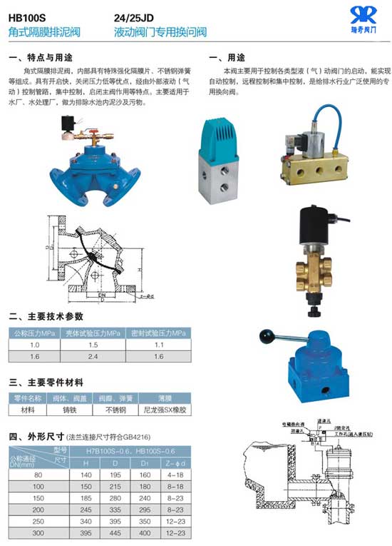 HB100S角式隔膜排泥閥特點(diǎn)與用途: