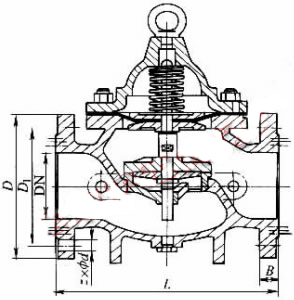 Y42X-10、Y42X-16 型水用減壓閥:法蘭連接形式、彈簧薄膜式結構、密封面材料為丁腈橡膠銅合金、公稱壓力 PN10~PN16、閥體材料為灰鑄鐵或球墨鑄鐵的減壓閥。